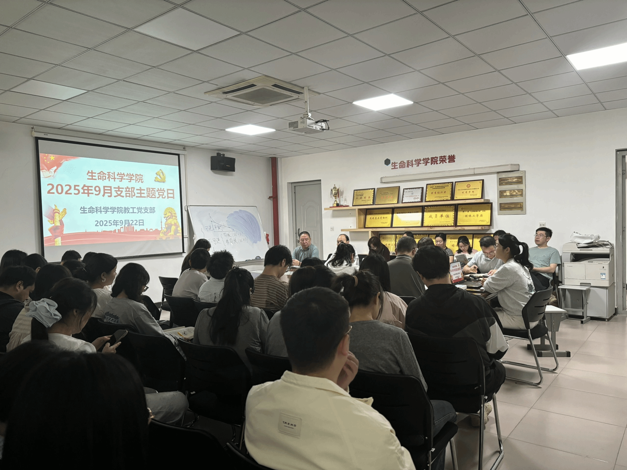 (通讯员:生科学院 冯雅岚博士 报道)为进一步提升党员教师的党性修养,传承红色革命精神,生命科学学院于9月22日下午在生科405会议室开展“2025年9月教职工支部主题党日活动”。全院教工党员参加了学习和交流,会议由学院党总支胡瑞年书记主持。