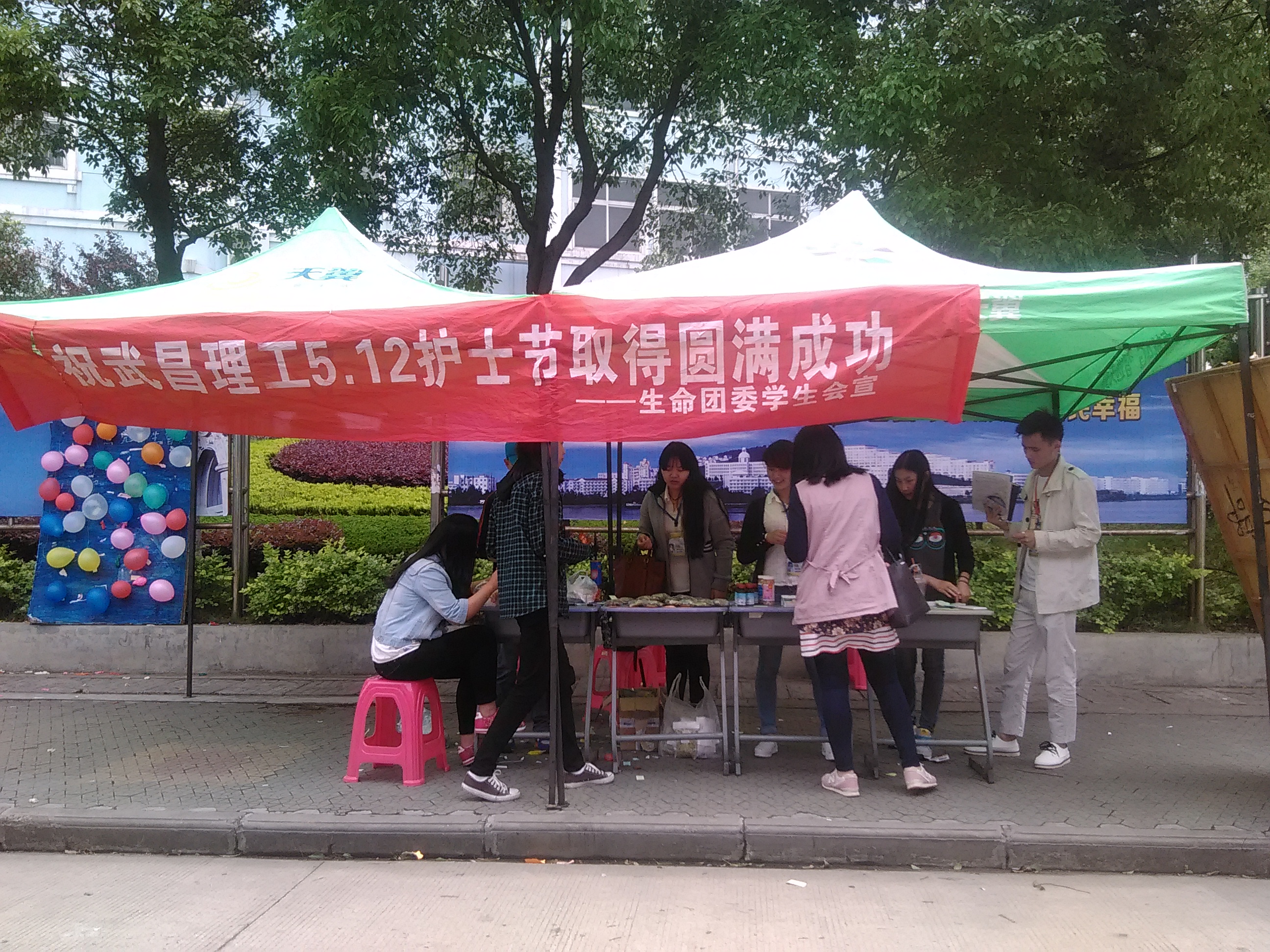 【通讯员 许锦虹】5月11日,在5.12护士节到来之际,为了向全校宣传护士节这个盛大的节日,我们生命科学学院外联部积极响应学院号召,在文化长廊搭起了帐篷,准备精美小礼品,开展小活动,吸引了众多的同学前来围观,场面甚是热闹。