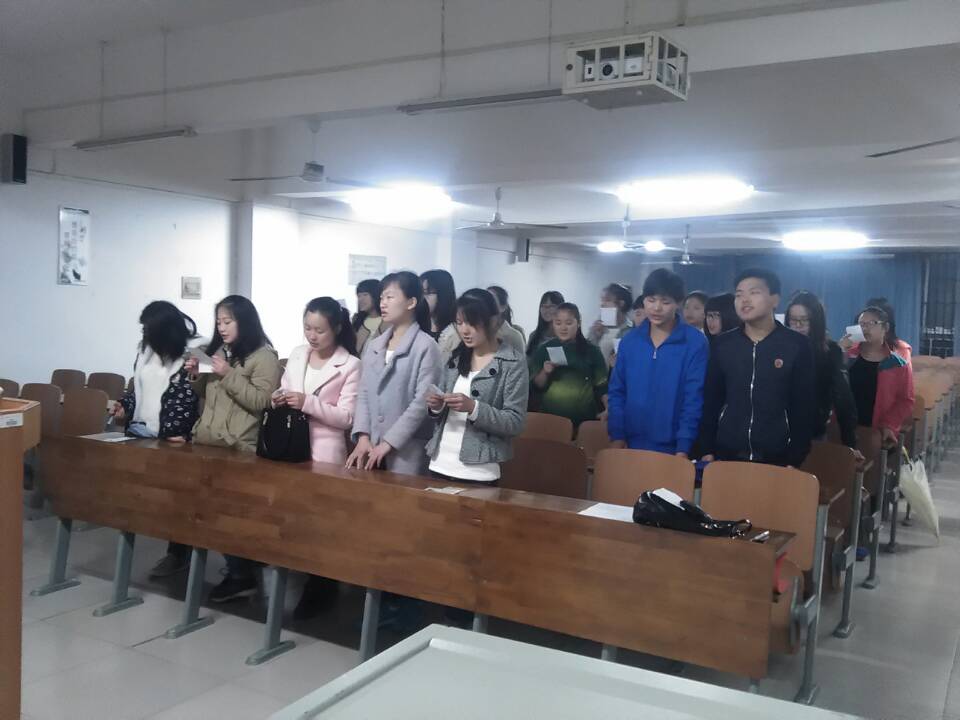 【生科记者站 李晶】为积极响应党的十八大以来习近平总书记在不同场合发表的一系列讲话,增强大学生对学习宣传贯彻讲话精神的重要性、必要性、战略性的认识。2015年4月19日下午7点,护理1403班在生科203开展了关于“四进四信”的主题班会。