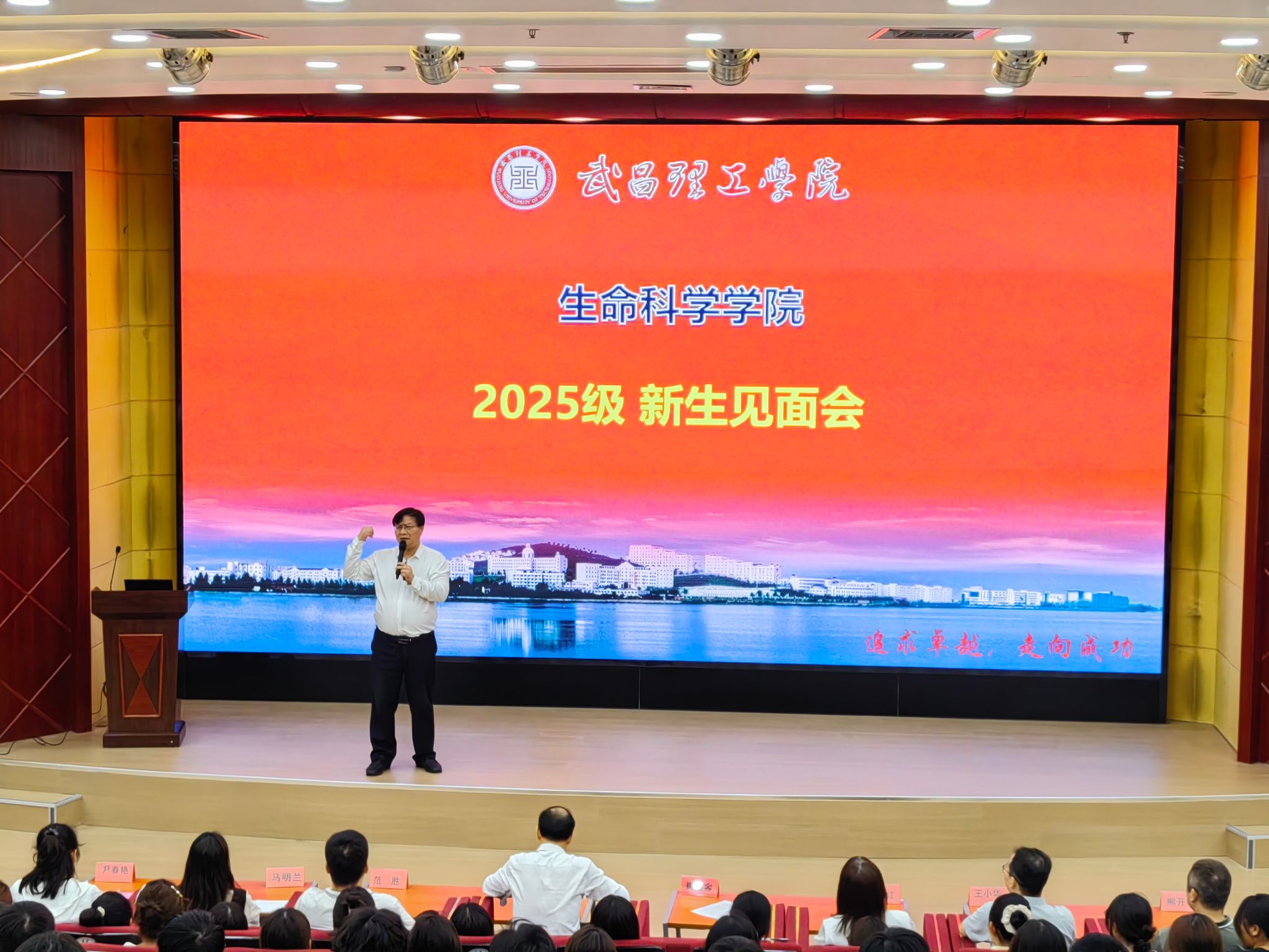 活动伊始,主持人宣布生命科学学院新生见面会正式拉开帷幕。武昌理工学院副校长兼生科学院院长崔海容教授首先代表学院全体师生,向2025级新生表达热烈欢迎与祝贺。他指出:新生的到来为生命科学学院注入了青春活力,学院将以优质资源为新生成长赋能。同时,他向新生寄予期许:“希望同学们立足当下,磨练意志品质,强化自主学习能力,树立远大目标,在武昌理工学院生命科学学院的探索之旅中顺利开启人生新篇章。”