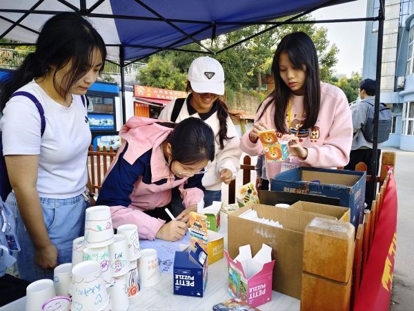 本次活动围绕青春这一主题,精心策划了拼图和纸杯绘画两项趣味盎然的游戏,需要生命科学学院学子们发挥想象力和动手能力。其中,洁白无瑕的纸杯成为现场焦点,不少过路者被其吸引,驻足观看。生科学子们在纸杯上尽情创作,绘制了众多生动的形象,如小猫小狗,蓝天白云,花鸟虫鱼,内容涵盖广泛。纸杯上的图案变得丰富多彩,部分生科学子更为巧妙地将这些图案组合成一幅幅生动的故事画面。与此同时,拼图游戏则考验着大家的耐心与智慧,每一块拼图的归位都伴随着生科学院同学们的欢呼声。当生科学学院同学们遇到困难时,社区委的成员总会耐心地给予引导和适当的提示,使得活动现场氛围激情热烈又不失轻松愉悦。