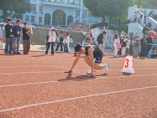 400米接力赛,是速度的角逐,更是团队协作的考验。在这场比赛中,生命科学学院的四位男将用完美的配合诠释了“团结就是力量”。赛道上,他们是风的追梦者;赛道旁,生命科学学院的同学们组成的助威团口号声、呐喊声此起彼伏,那是对运动健儿们最热烈的支持。阳光洒在他们充满汗水的脸上,却丝毫挡不住他们眼中的坚毅与热血。这场男子4×400米接力赛,不仅定格了选手们奋勇拼搏的瞬间,更展现了生命科学学院学子团结协作、勇攀高峰的精神风貌,为生命科学学院的运动会征程添上了浓墨重彩的一笔。