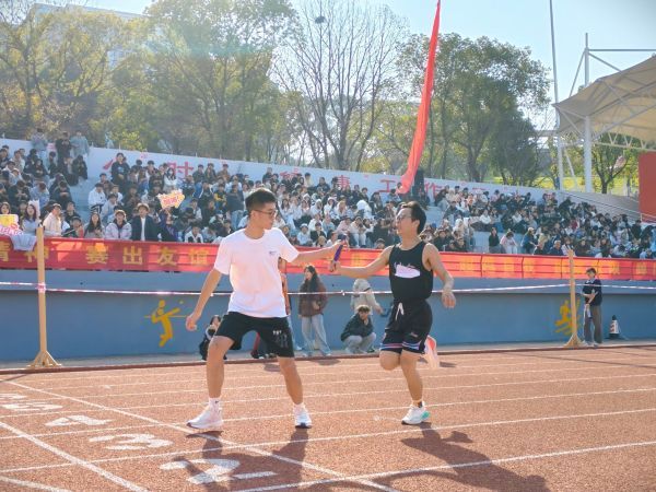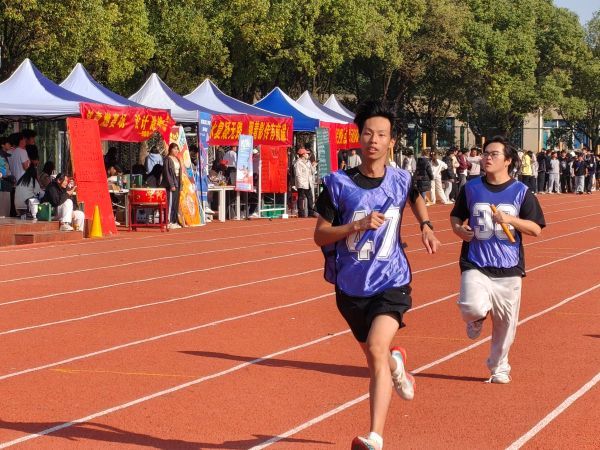 中南在线11月24日消息(通讯员 陈漫漫 报道 左晨玉 刘艺莹 摄影为了响应国家号召,激发学生运动热情,展现青春活力。武昌理工学院于2025年11月21日在东区操场开展了第二十一届运动会。第二天下午14:06左右,由生命科学学院的生物工程2501班雷田雨、药管2301班张佳兴、生物工程2401班安仲豪、生物工程班2501娄轶棋组成的队伍在男子4×400米接力赛取得了第四名的好成绩。展现了生命科学学院的青春风采。