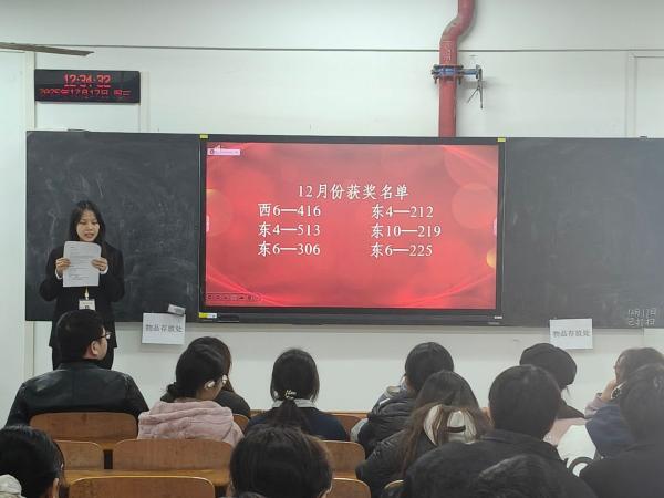 中南在线12月18日消息(通讯员 陈漫漫 报道 董丽雪 摄影)为深化武昌理工学院宿舍文化建设,营造整洁、文明、和谐的住宿环境,发挥优秀寝室的示范引领作用,生命科学学院于12月17日在生命科学学院502教室开展了红榜寝室颁奖活动。生命科学学院党总支书记胡瑞年、生命科学学院团委书记范胜共同出席本次活动。