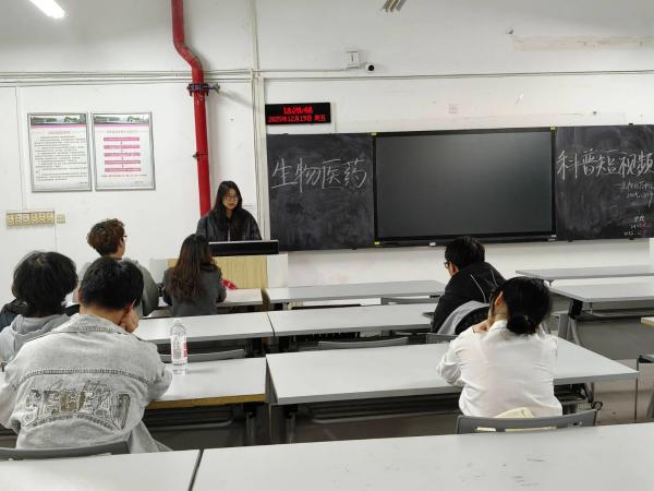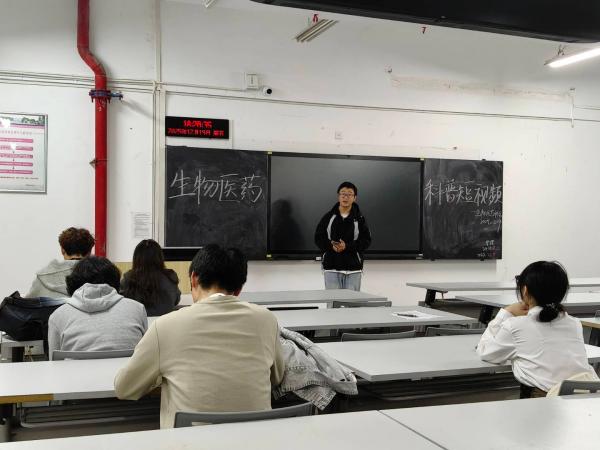 活动伊始,生物与医药协会副会长李兴雨首先上台发言,结合当下新媒体传播趋势,阐述了生物医药科普短视频创作的价值与意义,并分享了多个优秀的科普短视频案例,从选题方向、内容架构到镜头语言等方面,为生命科学学院的学子们拆解创作技巧。此次活动以“用短视频讲好生物医药故事”为核心,旨在破解生物医药知识专业门槛高、传播形式单一的难题,引导生命科学学院的学子们将课堂所学转化为通俗易懂的科普内容。