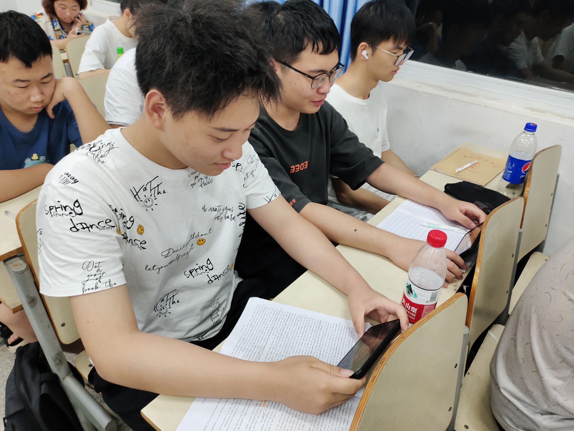 在第一轮当时答题时,主持人龙洋说出题目李大钊的文章《青春》最早发表于哪一年。生物工程2001班尽管与答题现场隔着屏幕,也依然积极参与到答题中。在主持人宣布正确答案之前,这让同学们都很紧张。在公布答案后,有的同学会因为回答正确很激动很开心,有的同学则会因为回答错误而感到丧气。