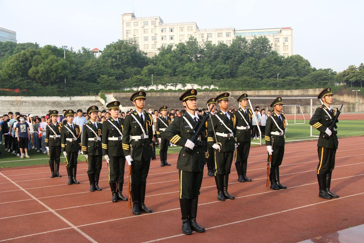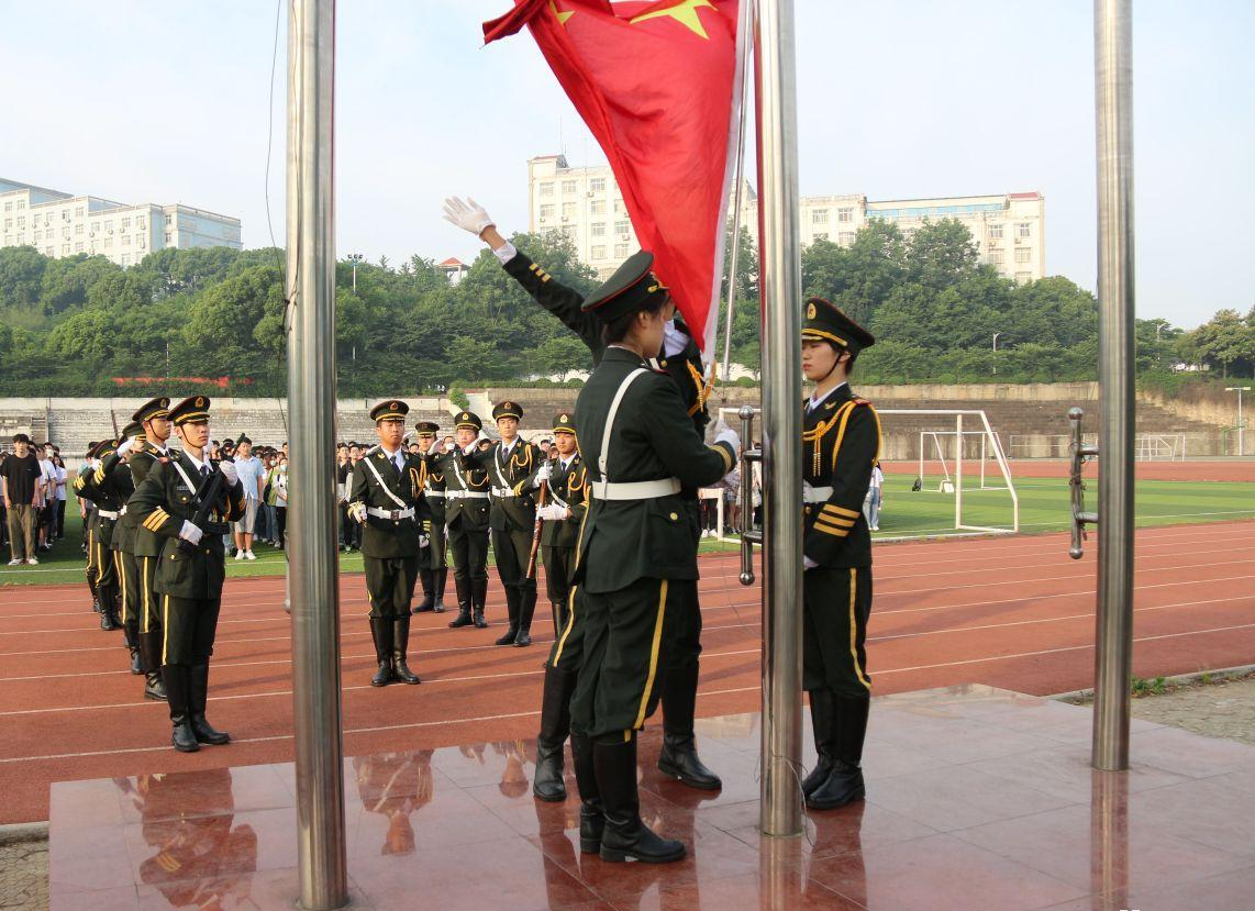 本次仪式以国旗护卫队整齐划一的入场步伐正式展开,伴随着《义勇军进行曲》的歌声和全体成员的注视,鲜红的五星国旗迎风飘扬。接着主持人生物工程2001班马欣冉带领全体成员在国旗下庄严宣誓并齐唱团歌《光荣啊,中国共青团》。