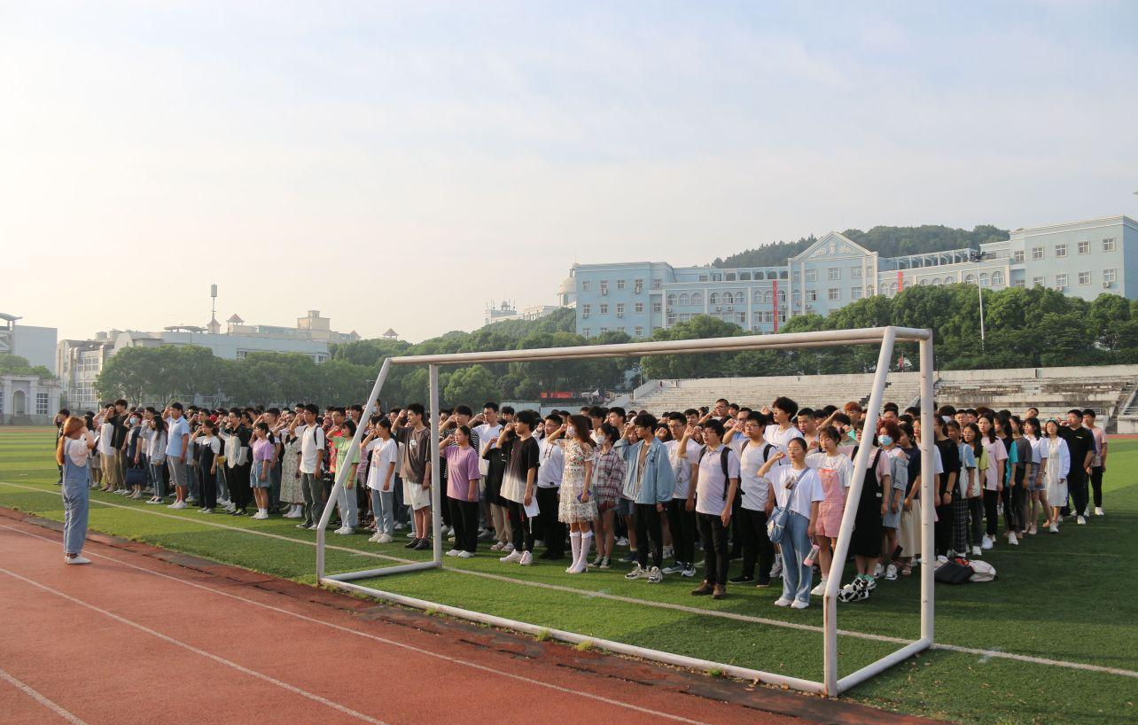 5月10消息(大通社记者 陈飞扬 报道 曹跃 摄影)为全面贯彻《新时代爱国主义教育实施纲要》,营造良好的爱国主义氛围,进一步提升青年大学生爱国主义精神和社会责任,着力培育和践行社会主义核心价值观,加强校园精神文明建设。学院于10日6时50分在操场举办了升旗仪式。学院党总支书记南小烈,素质导师邓婧以及18,19,20级全体学生共同参加。