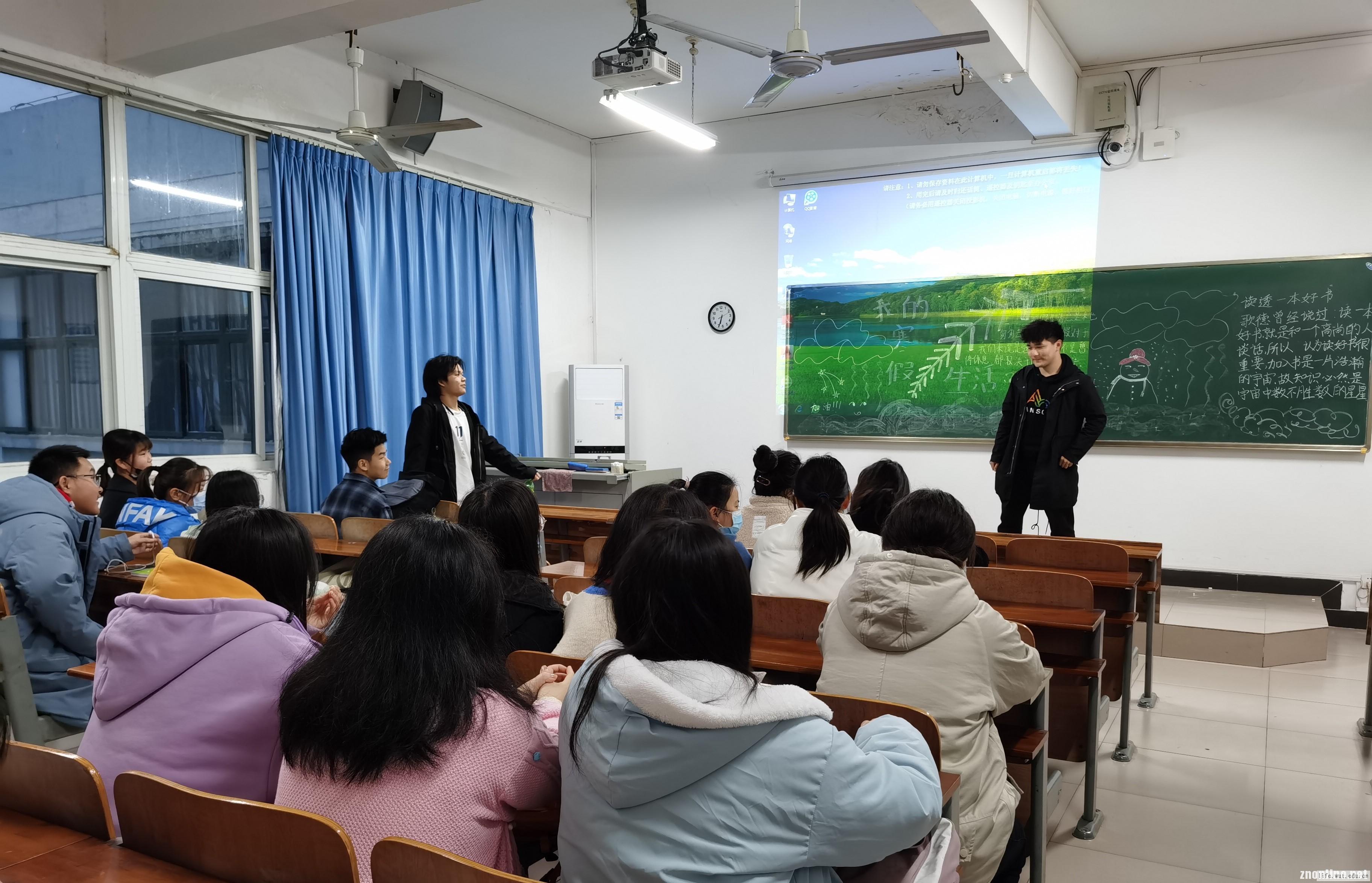 而药学2001班的班会与其他的班级都不同。药学2001班的同学,每一个人都上台分享了自己的寒假生活。在众人的分享过程中,除了吃喝玩乐的娱乐生活外,大家也分享了一些有意义的寒假生活。李啸云同学就有谈到她在寒假生活中去做一个社区志愿者,在社区服务的过程中,它主要帮助大家完成日常体温打卡以及为社区成员宣传一些防疫小知识。社区工作的经历不仅让她对工作有了更深的认识,也让她收获了生活上方方面面的经验。而刘易同学也为大家分享到自己在药店帮忙的经历,此举既让他收获了工作中的一些经验,又加深了自己对专业领域知识的一些理解。亦是有其他同学为大家展示了他们学习乐器,学习厨艺等生活技能的寒假生活分享。