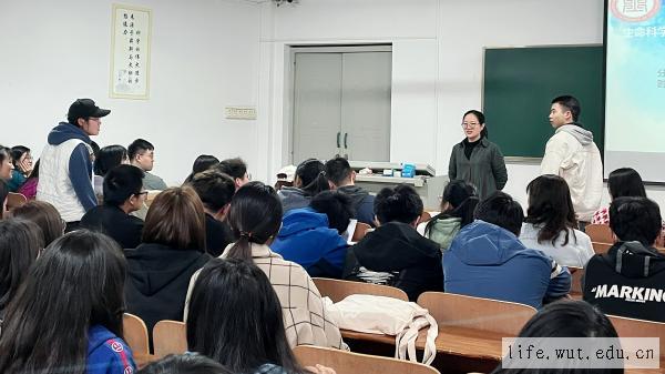 在活动中,倪安婷向同学们从英语、政治和专业课三个方面详细地介绍了每个科目的学习方法,还告诉同学们在学习过程中要专注一个老师,不要贪多,最重要的就是理解记忆,弄清原理,然后坚持的去做下去。她的讲述全面而有趣,同学们都在边听边做笔记,记下重点。接着,汪珊珊告诉了同学们如何自我定位选择适合自己的学校,还推荐了一些公众号,帮助同学们去搜集考研资料,她向同学们强调,考研注定难熬,要保持好的心态,相信努力就有结果。紧接着,赵灿明介绍的专硕和学硕的区别,还教给同学们如何计算自己的考研每科需要达到的分数。最后,许安华向同学们介绍了他自己的答题方式和思路,告诉同学们要有条理、有框架的去答题,在考研过程中要独立思考,不要和他人攀比。