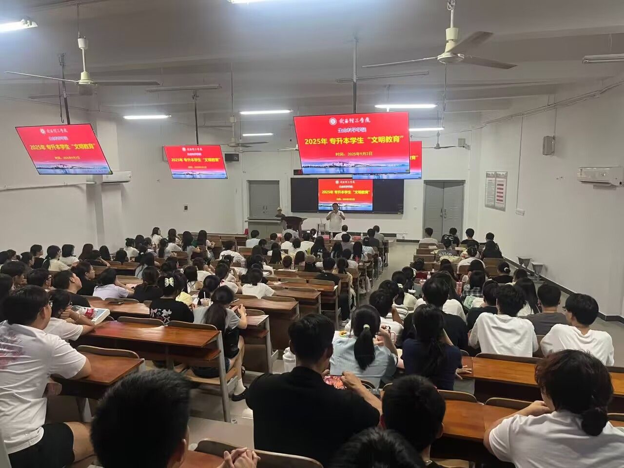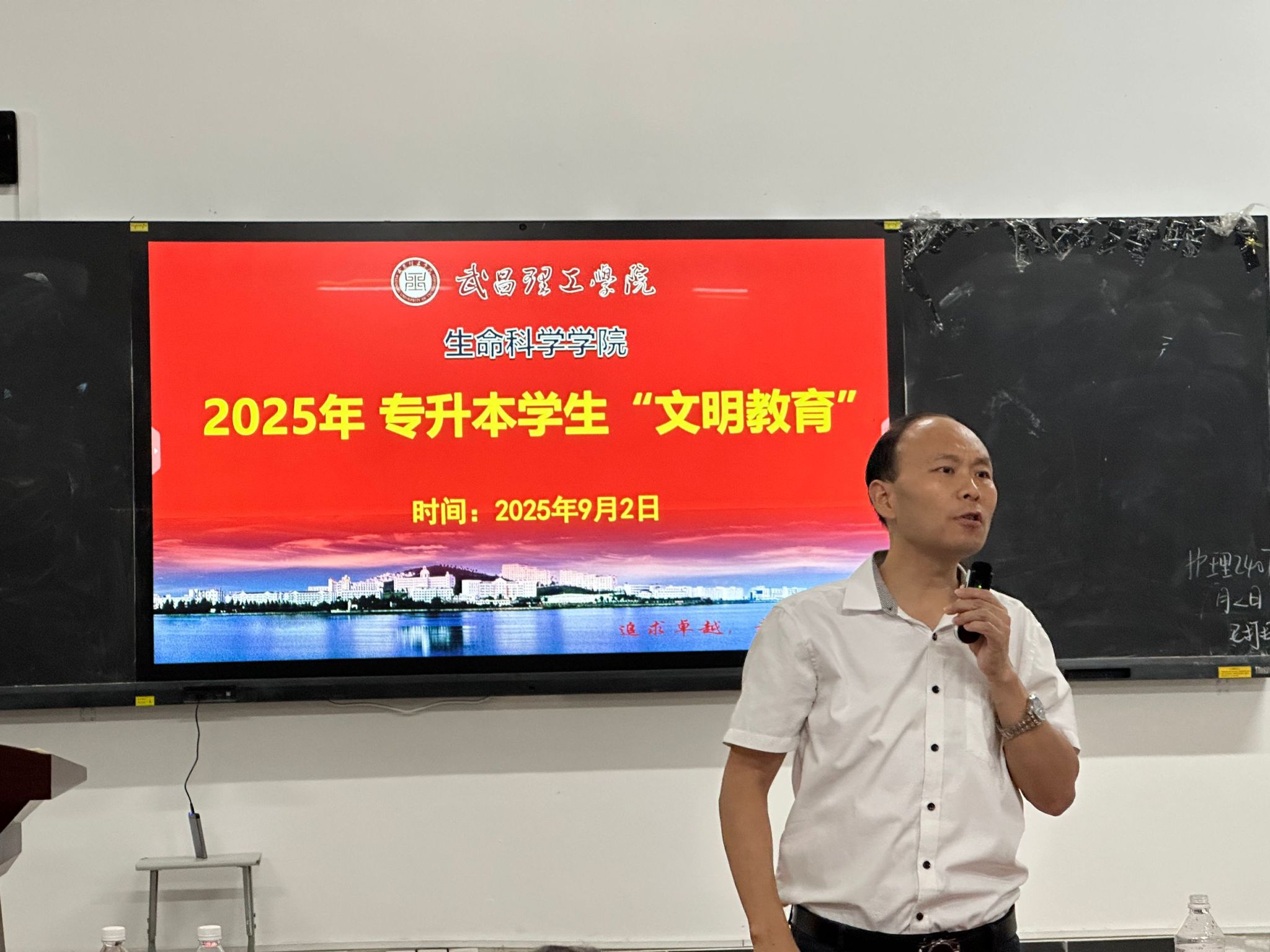 中南在线9月4日消息(通讯员 方艳丽 报道)为进一步提升专升本学生的文明素养,营造文明和谐的校园氛围,近日,武昌理工学院生命科学学院开展了针对2025届专升本学生的文明教育讲座。生命科学学院党总支书记胡瑞年作为主讲人出席本次讲座,2025届全体专升本学生共同参与。