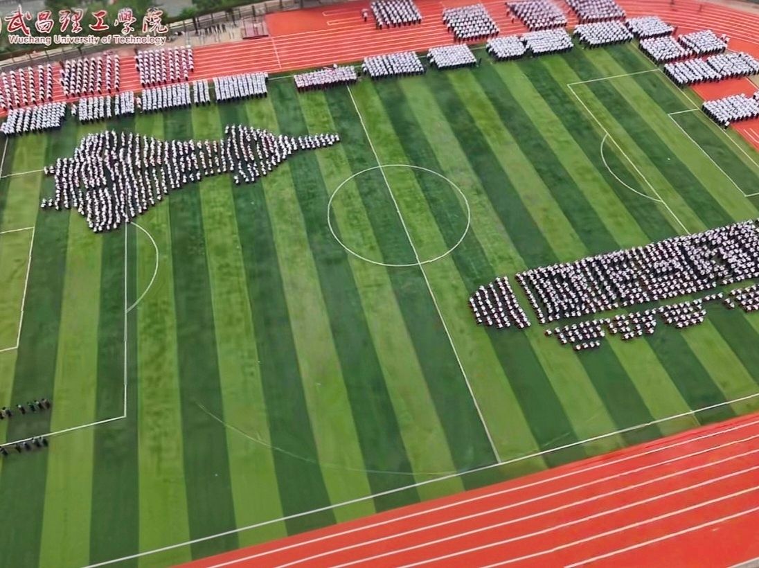 此次检阅仪式中,生命科学学院近百名新生们参与的航拍创意表演成为现场亮点。在方队完成队列展示后,参训新生们迅速变换站位,在操场内组成巨型“飞机、火箭”造型。与此同时,航拍设备升空,从高空捕捉这一创意画面:“飞机、火箭”主体由数百名新生紧密排列而成,轮廓清晰、形态逼真,象征着学子们逐梦前行、直冲云霄的志向。花样方正既展现了军训期间培养的团队协作能力,也为严肃的检阅仪式增添了青春活力。
