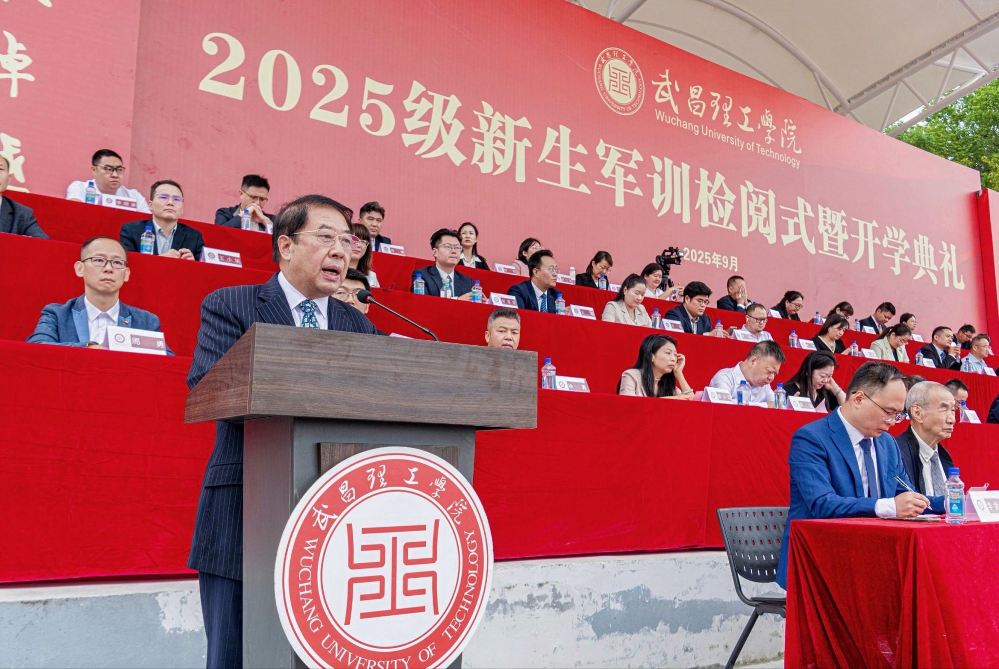 军训检阅仪式开始,各学院参训队伍陆续集结完毕,操场内旌旗飘扬,武昌理工学院新生们身着统一军训服,以学院为单位组成整齐方阵,等待检阅。当校党委书记汪继平步入检阅场地时,全场新生齐声高喊“书记好!为校争光”,嘹亮口号回荡在校园上空,既表达了对武昌理工学院领导的敬意,也传递出全体新生投身校园建设的坚定信念。