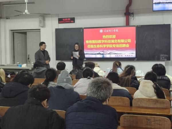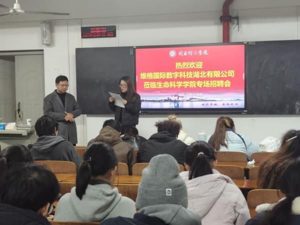 中南在线12月8日消息(通讯员 李婧怡 报道)为搭建人才发展平台,吸引符合单位发展定位的专业人才,助力长远建设,武昌理工学院生命科学学院于12月4日在生命科学学院502教室与维格国际数字科技湖北有限公司联合开展专场招聘会。维格国际数字科技湖北有限公司徐章磊总经理、生命科学学院“一站式社区”建设负责人刘郁婷老师及生命科学学院学子共同参与。