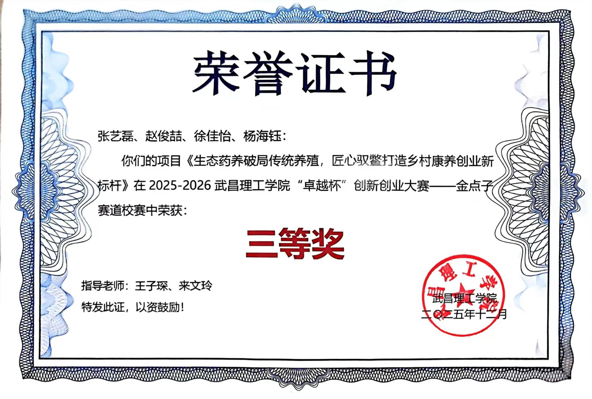 据了解,“卓越杯”创新创业大赛是武昌理工学院培育双创人才、推动产学研融合的重要平台。此次生命科学学院团队的获奖,既是对学生创新创业能力的肯定,也为学院深化新农科与大健康领域的创意研究积累了实践经验。团队表示,后续将进一步完善项目的技术落地与商业模式设计,力争将“中药药养中华鳖”的创意转化为实际成果,为乡村振兴与水产养殖产业升级贡献青春力量。